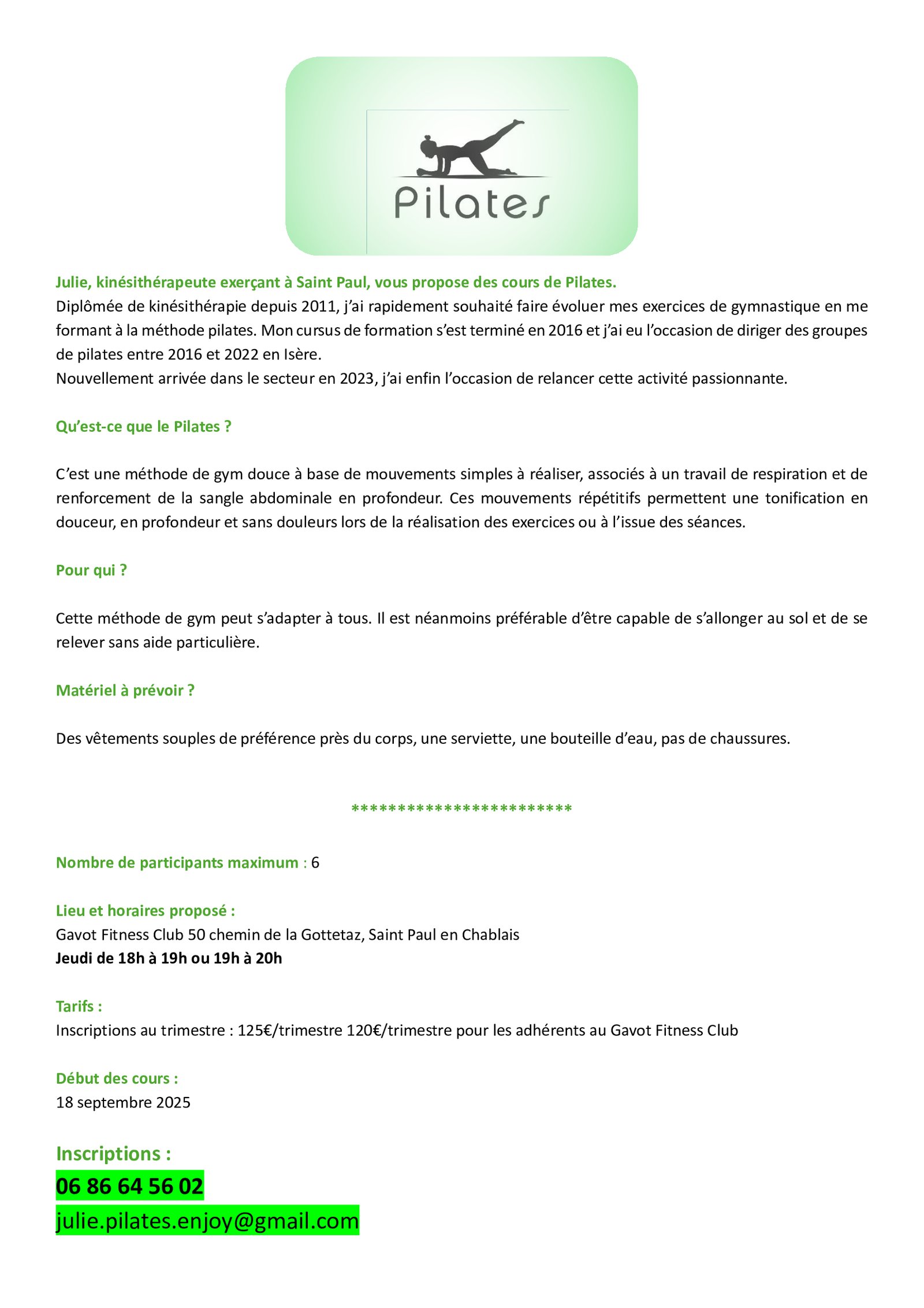Prenez contact avec Julie au 06.15.48.26.37 ou via lacroix.julie74@live.fr pour vous inscrire.